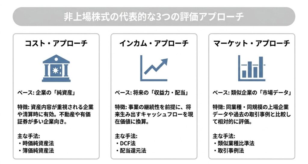 | 価格の決まり方(評価方法) | 出来高で価格が即時に可視 | 類似業種比準法・時価純資産法・配当還元法などで算定 |