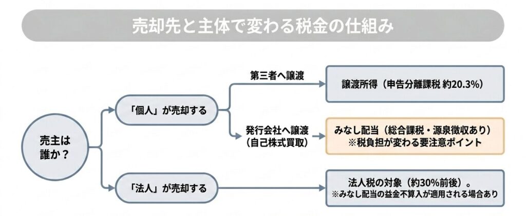 同じ売却でも税負担が変わるため、売却先を決める前に税務上の扱いを確認しておくことが欠かせません。